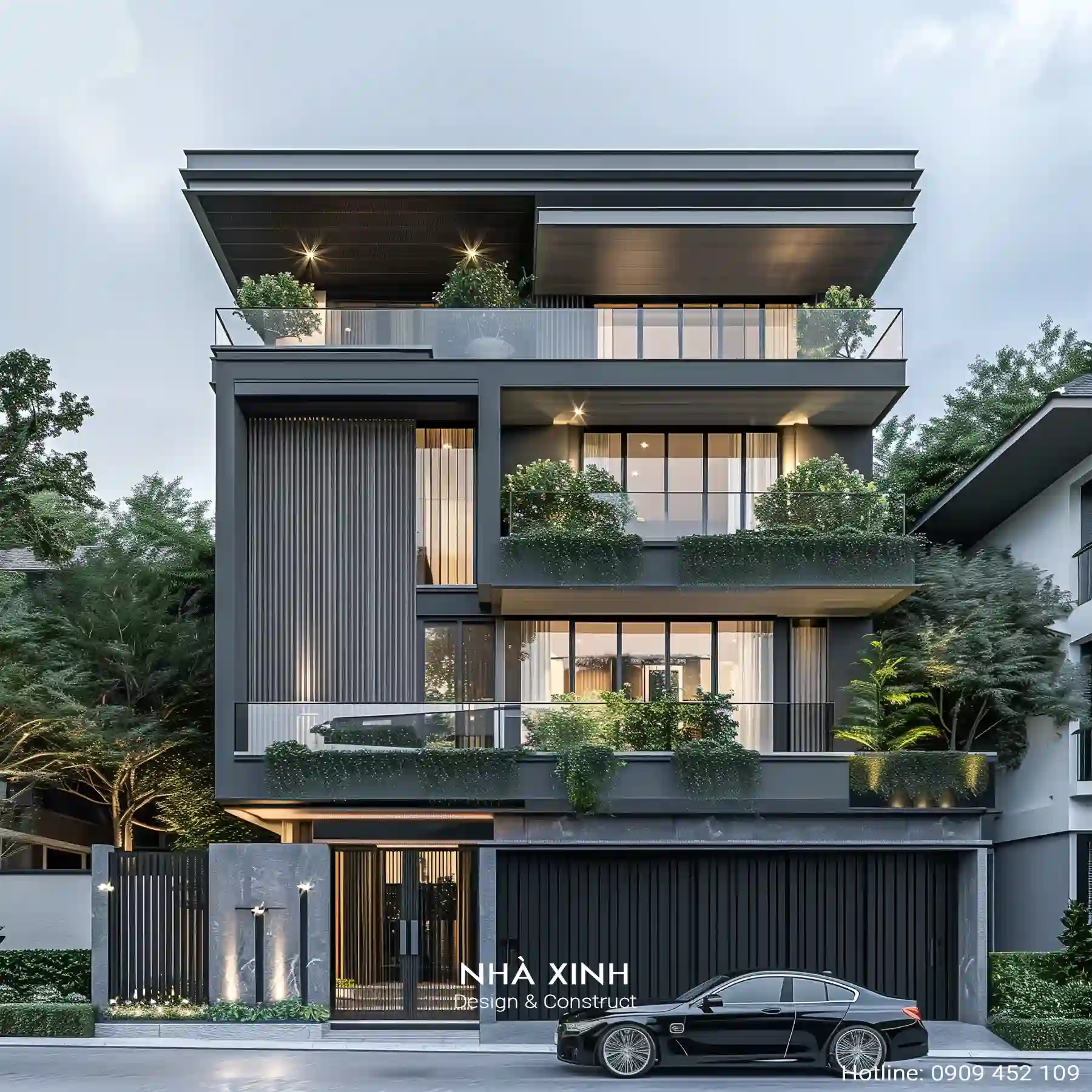 Tư vấn kiến trúc ngoại thất biệt thự 4 tầng BT115